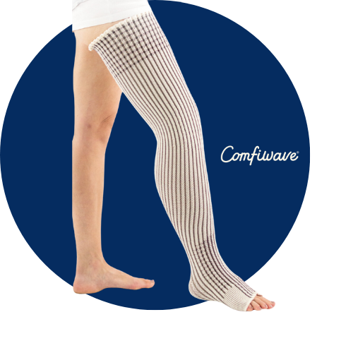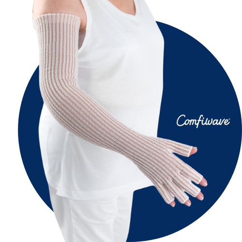 Comfiwave ist eine fortschrittliche Kompressionsware, die speziell entwickelt wurde, um die Therapie von Lymphödempatientinnen und -patienten während der Ruhezeit zu unterstützen.